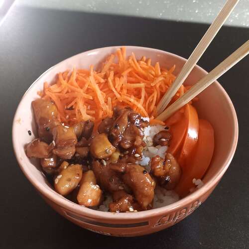 - - Une fois cuit, le mettre dans les bols avec le reste de la marinade
