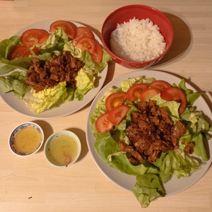 - - Disposer les feuilles de salade, la tomate et le boeuf dans des assiettes